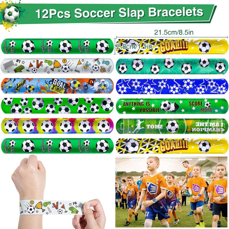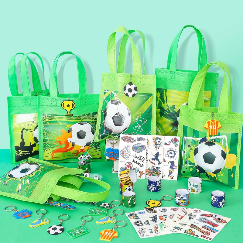 - Soccer Birthday Party Favors - It's soccer time! Our set of soccer party favors are packed with fun and practicality. The soccer non-woven bag has a large capacity, which allows children to carry items easily. Keychains have different shapes. Stickers and slap bands catch kids' attention instantly. Whether you're celebrating a birthday, hosting a tournament, or just getting together with friends to watch games, these party favors will add an extra element of fun and excitement to your event