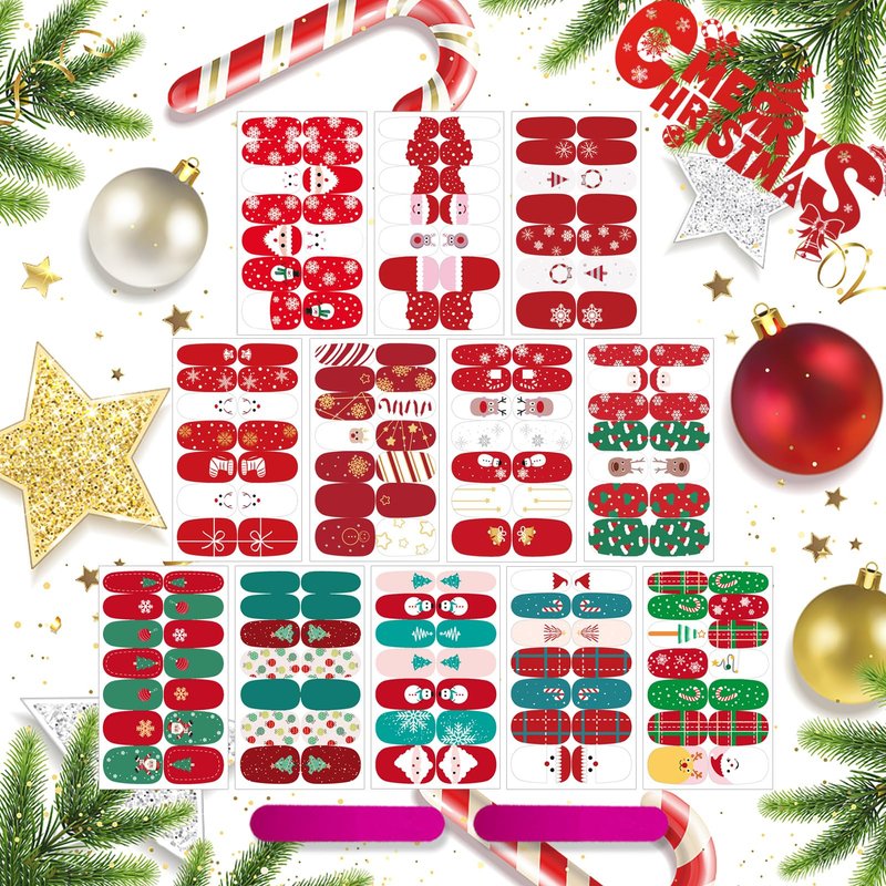 - Christmas Value Pack: You will get 12 sheets Xmas full wraps nail art sticker and 2 piece nail files, rich colors and classic patterns, such as Santa Claus, Christmas tree, snowflake, snowman, reindeer etc. which can offer you multiple choices, satisfy your rich imagination of nail DIY and create your own Christmas.