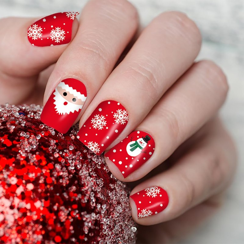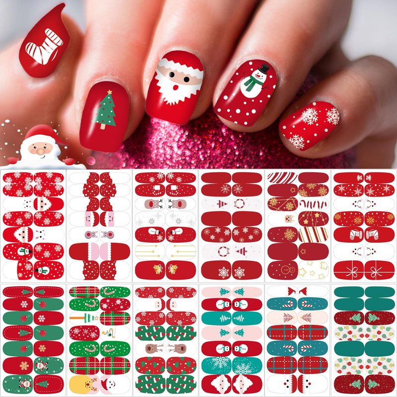 - Easy to Use: These nail wraps are self-adhesive, friendly to beginners. just clean your nail surface, use tweezers to pick up your favorite Christmas pattern on the sticker, stick it on the nails, press lightly and rip down the excess and then apply a layer of transparent nail polish, make the stickers last longer.