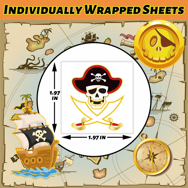 - Pirate party Gift: Great for pirate party for kids, classroom games, trick or treat, birthday party. Children will love to apply these tattoos on their face or hands. You can also share with your friends, family, and neighbors to enjoy a pleasant vacation.