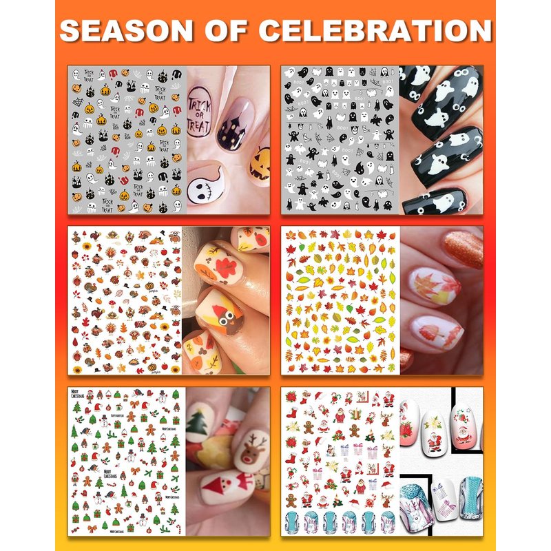 - Various cute holiday patterns: Including various seasonal classic themes: Daisy, Butterfly, U.S. flag, pumpkin, spider web, Santa Claus, snowflake, maple leaf, clover, Turkey, love, heart, Easter egg etc. Providing you with a variety of choices, to meet your rich nail DIY imagination, to create your own style.