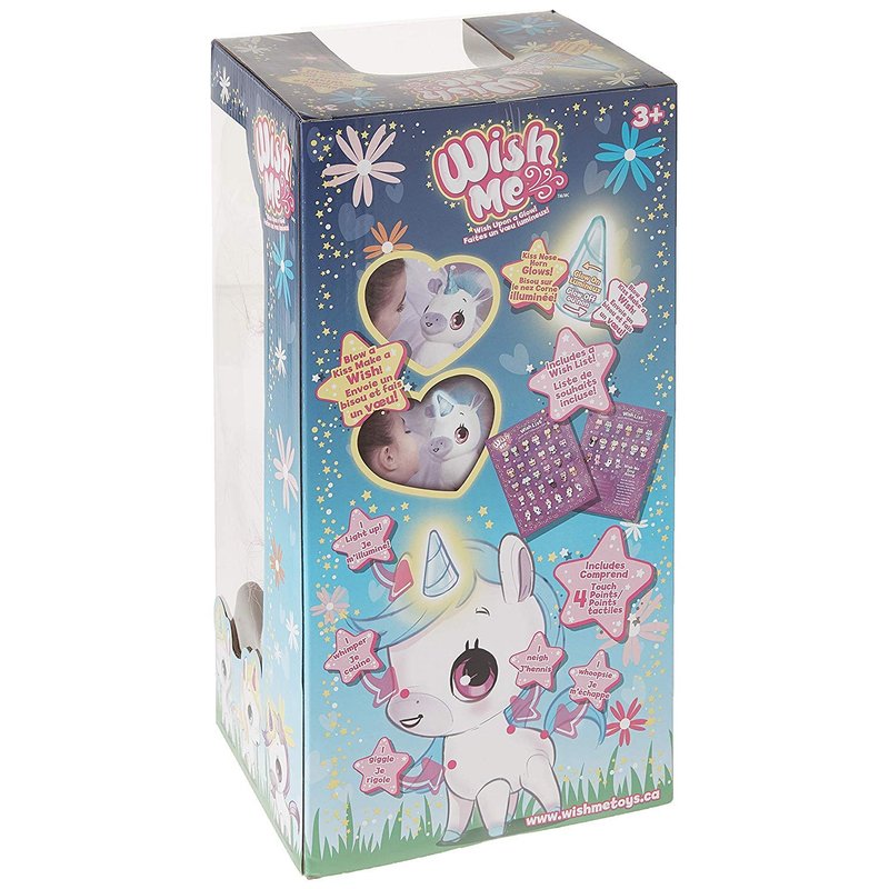 With the Wish Me Pets, you can make your own wish whenever you want. Just kiss your pet's nose to light up their bow, make your wish, blow on the bow to make the light go out, and wait to see if your wish comes true! Our pets feature four different touch points that react to you. You can kiss, hug, squeeze, and love your new plush pal to elicit different lights and sounds. They react to you just like a real pet or like a real friend! Wish Me Pets are notorious for being incredibly cuddly. Grab your pet at bed time and fall sleep snuggling a squishy, soft friend. They're a must have for naps and bedtime alight, or just when you need a friend to hug. Package contains (1) Wish Me Original Pinky Unicorn. Pets respond to touch with lights and sounds. High quality construction. Long Lasting, safe LED lights. Automatic light shut off. Soft and cuddly exterior. Perfect for bedtime or playtime. For full functionality on the full size unicorn, please switch to "On" Mode. This can be found on the battery pack by opening a flap in its stomach.
