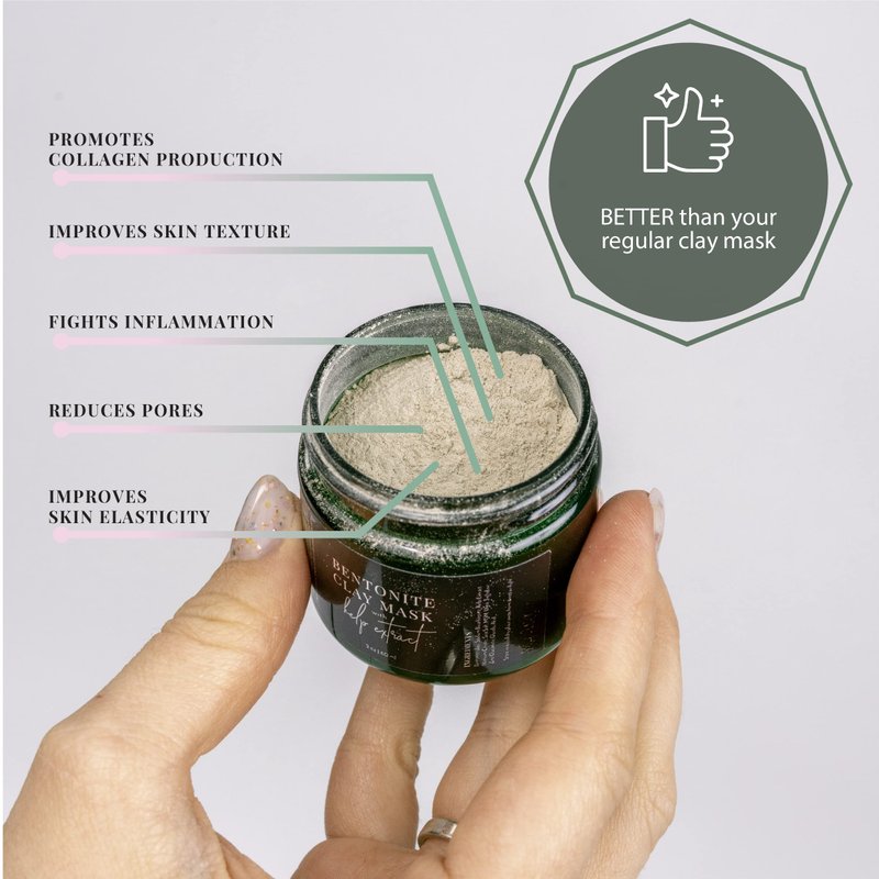 Improved formula. The advanced detox and brighten clay mask composition consists of bentonite clay, kelp extract, and other ingredients to make your skin clean, fresh, and supple. The kelp extract helps to soften and hydrate dry skin. The mask is cruelty-free and not tested on animals.