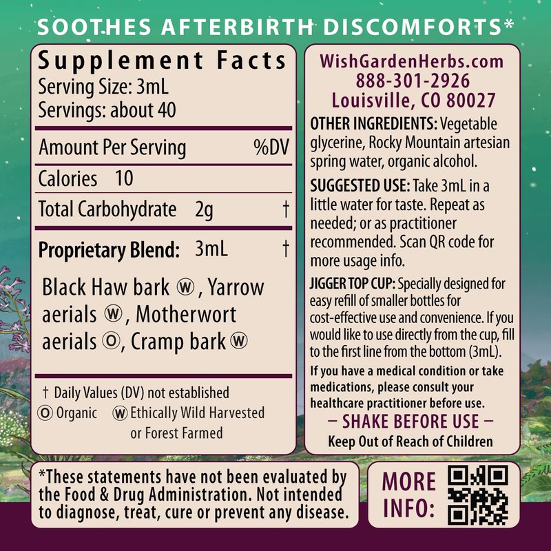 - Color: Wishgarden Herbs Afterease for After Birth Contractions - All-natural Herbal Supplement With Cramp Bark & Black Haw Bark Soothes Afterbirth Contractions & Uterine Cramping, Postpartum Essentials, 4oz