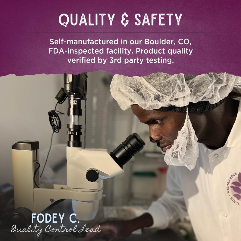 - COMMITMENT TO SUSTAINABILITY: WishGarden makes this afterbirth tincture from a love of plants and the earth, so sustainability is very important to us. Each of our herb suppliers and farmers go through an extensive screening process and annual review and must meet our high standards for sustainability & quality.