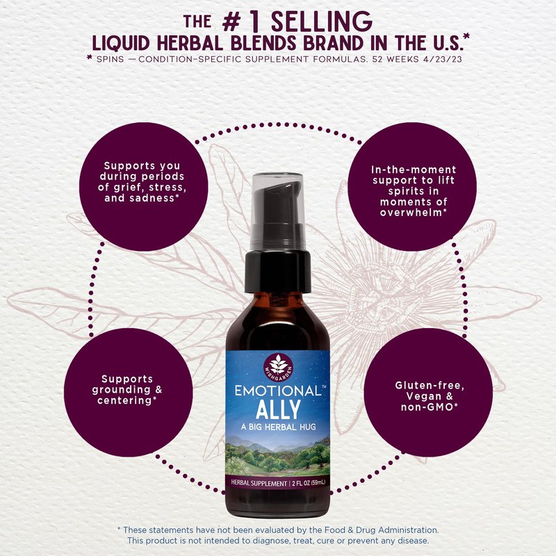 - EMOTIONALLY SUPPORTIVE HERBS HELP YOU CONFRONT LIFE WITH A SMILE: There are times in our life when we are ruled by our emotions. Emotional Ally supports you becoming grounded and centered. Our artisanal blend of calming and soothing herbs include Motherwort aerials, Scullcap aerials, Milky Oat tops, Passionflower aerials, St John's Wort aerials & Spikenard root. Emotional Ally can aid you in working through the storms of life with a smile. Use during periods of grief, stress, and sadness.