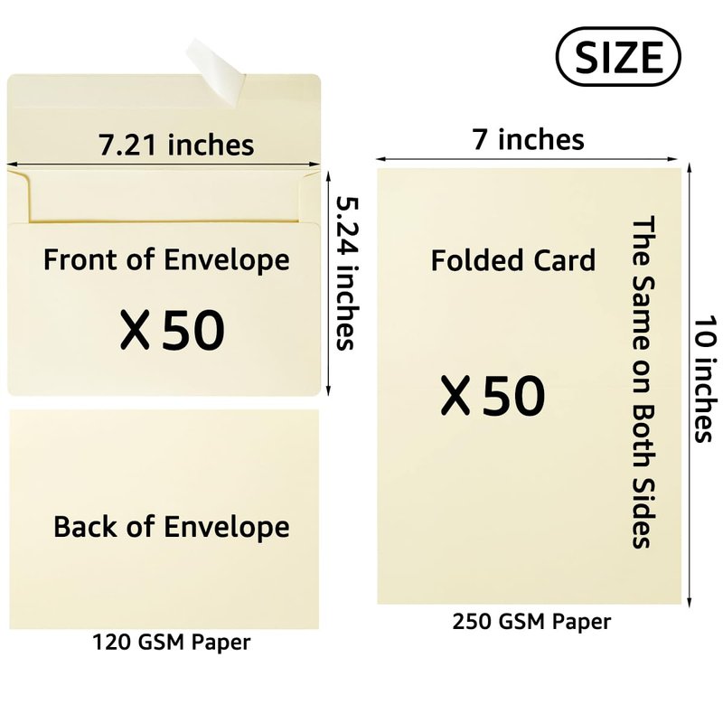 - Versatile: 50 pack of self-adhesive envelopes with fold cards, perfect for wedding invitations, greeting cards, baby shower announcements, and letter mailing.