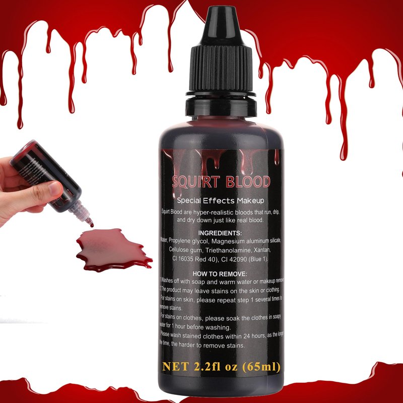 - Squirt Blood for Special Effect Halloween - Realistick Fake Blood for Halloween, Squeeze to body on face, arms and legs or the clothes makeup, zombie costumes, props, and sets, just like real blood with easy-to-use squeeze design. Have fun with your friends and family.