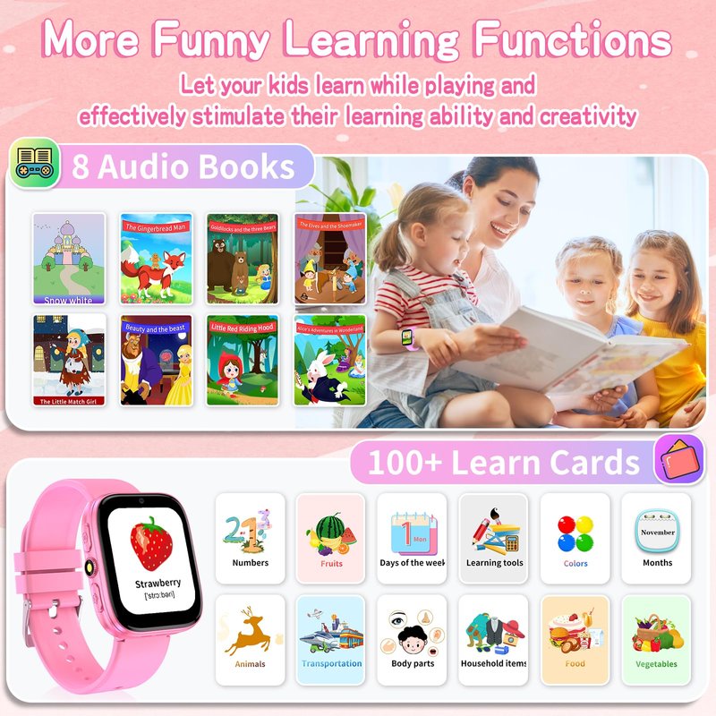 WISYME Kids Smart Watches for Girls Boys with Puzzle Games/Habit Tracking/Audio Book/Learn Card, HD Touch Screen Pedometer Camera Alarm Clock Educational Birthday for Ages 4-12 (Pink)