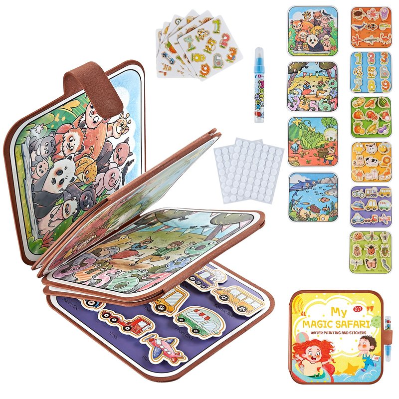 WITBLAN adopts the Montessori education method and combines two educational toys, a water painting book and a sticker book, to create a new busy board. It can help improve the fine motor skills of toddlers aged 1-7, strengthen hand-eye coordination, and cultivate creative and logical thinking and problem-solving skills while playing.