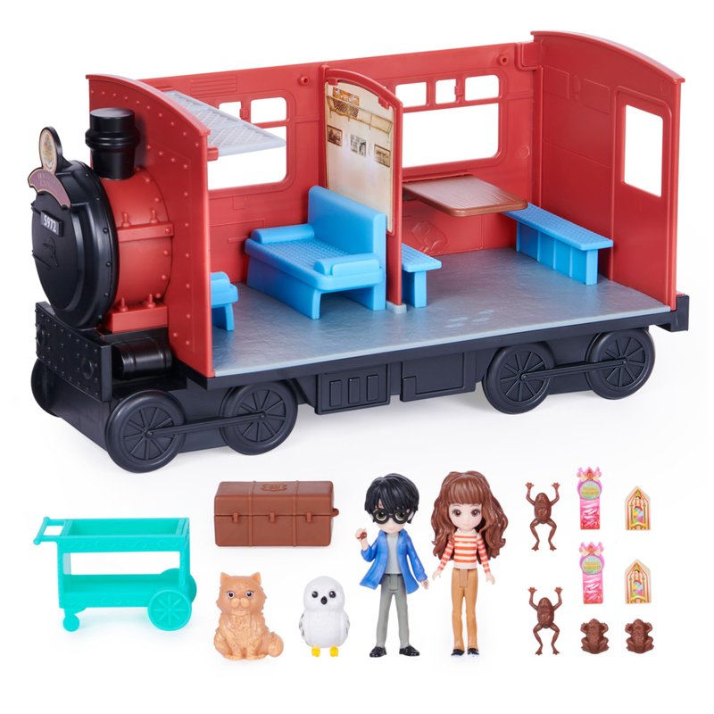 - 15-PIECE HOGWARTS EXPRESS TOY PLAYSET: Board Hogwarts Express at Platform 9 ¾ with Harry, Hermione, Hedwig and Crookshanks This train toy includes 10 accessories to recreate your favorite Harry Potter scenes