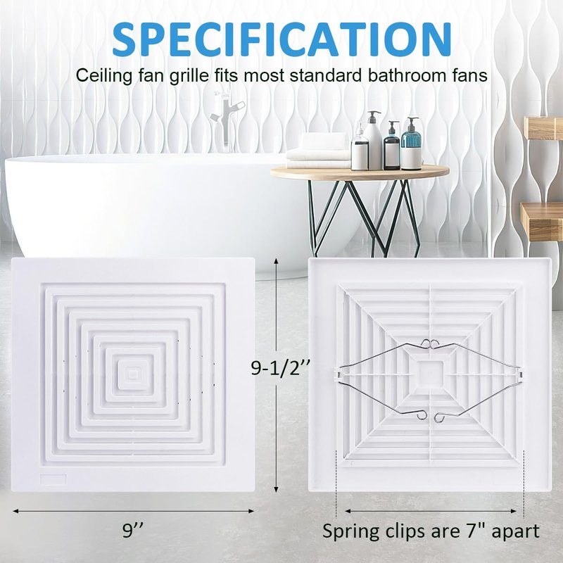 WKZO 2-Pack BP46 BP90 Bathroom Ceiling Fan Grille with Springs Replacement Parts for Square Ceiling or Wall-Mount Exhaust Fan Cover Fits Models 663, 670, 671, 675, 688, 689, Ventilation Fan