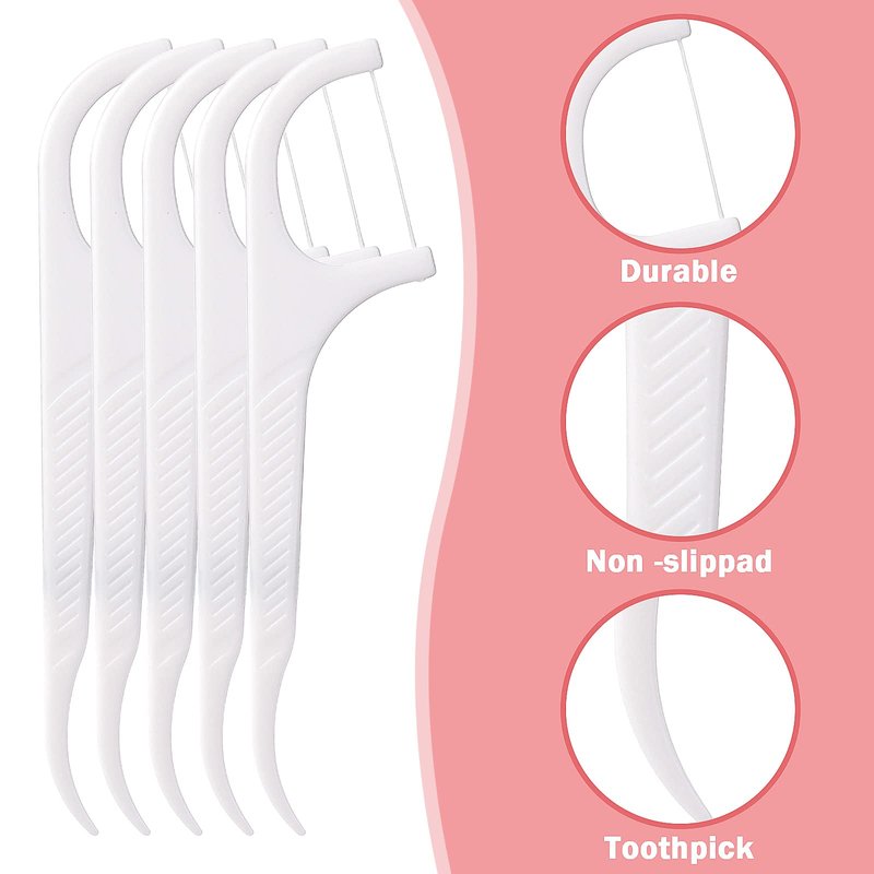 - 【High-quality Dental Flosser】The floss picks for teeth are made of high-molecular polyethylene fiber, flossers for adults are not easy to break and will not hurt the teeth. The tongue scraper easily slides into the teeth to remove food debris and keep teeth clean. The floss handle adopts an anti-slip design to enhance the hand feeling, and the curved end can be used as a tooth picks