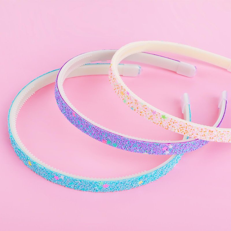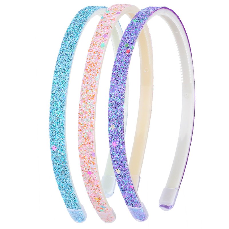 WLLHYF Glitter Headband, Plastic Cute Sparkly Non Slip Head Bands with Teeth, Colorful Confetti Rainbow Bling Sweet Hard Hairbands, Little Girl Hair Accessories (3, Pink + Blue + Purple)