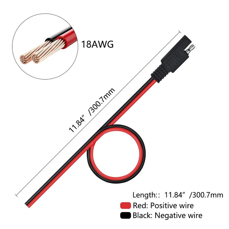 WMYCONGCONG 5 PCS SAE Power Automotive Extension Cable SAE Quick Connector Disconnect Plug SAE 2 Pin Automotive Extension Cable 18AWG 300mm