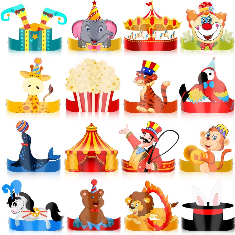 - Circus Theme Element Design: the paper crown of the party is designed with bright colors and beautiful circus elements, such as seals, elephants, giraffes, monkeys, lions, clowns, popcorns, circus tents and so on; It looks charming and will fulfil your dream of exploring the circus
