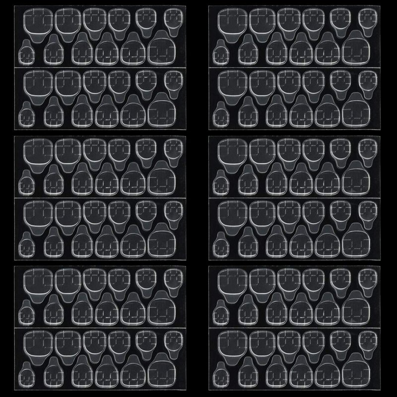 - Material: The nail tabs are made of high-quality jelly glue sticker, which is more viscous than the normal version, and it is not easy to fall off. Package Content: 600pcs (25 sheets) Nail Adhesive Tabs, 24 tabs in each sheet, there are 12 size for you to choose from, fit for each fingernail, meet your defferent needs.