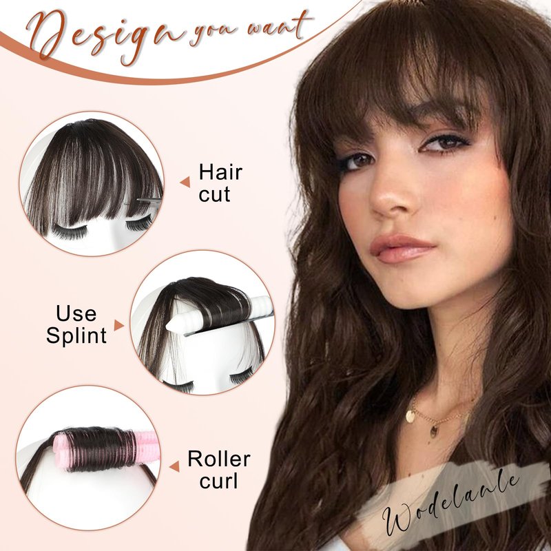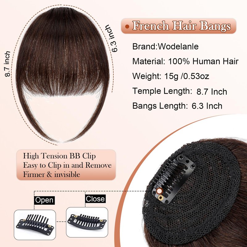 Wodelanle Bangs Hair Clip in Bangs,100% Human Hair Fake Bangs Clip on Bangs Dark Brown,Faux Bangs Clip in Hair Extensions,French Bangs Fringe With Temples Hairpieces Curved Bangs for Daily Wear