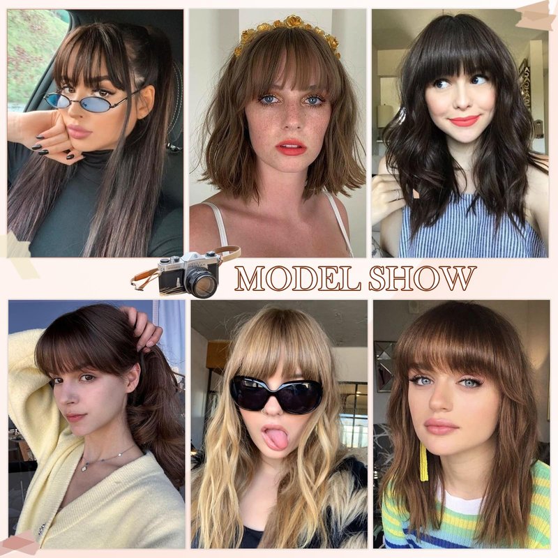- 🧡Perfectly Shape Your Face:French Fake Bangs With Hair Temples are suitable for all face shapes and can be styled in various ways to match different hairstyles. Whether you want a cute and playful look or a more sophisticated style, these bangs can be easily customized to suit your preference. The wispy bangs with hair temples add a touch of elegance to your overall appearance while the bangs provide enough thickness to cover your forehead without appearing wispy.