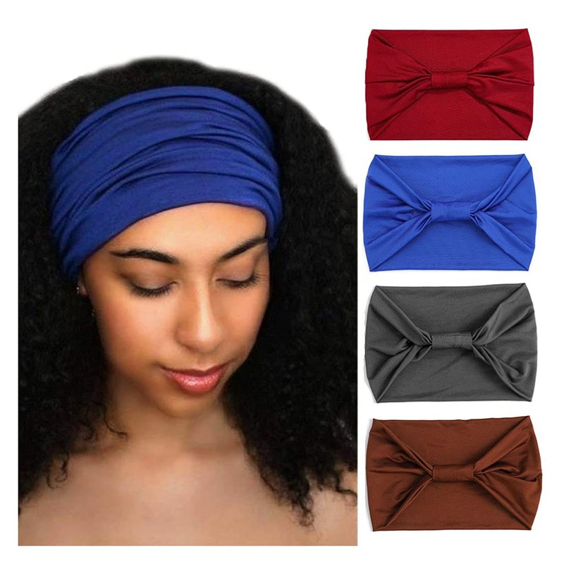 Woeoe African Headbands Knotted Hairbands Blue Yoga Sport Head Wraps Wide Elastic Head Scarf for Women and Girls (Pack of 4)