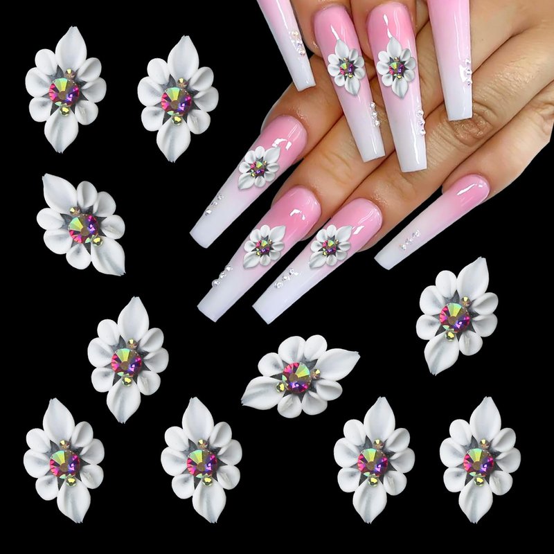 - 【3D Nail Charms】: Package Content 10 pieces white simulation flower nail charms, fit for plenty of nail art designs.