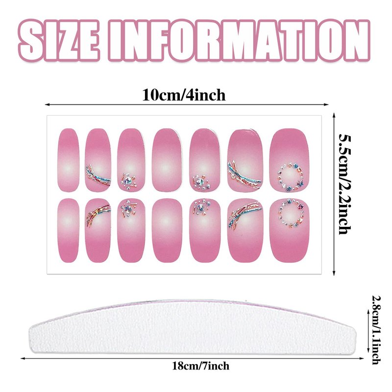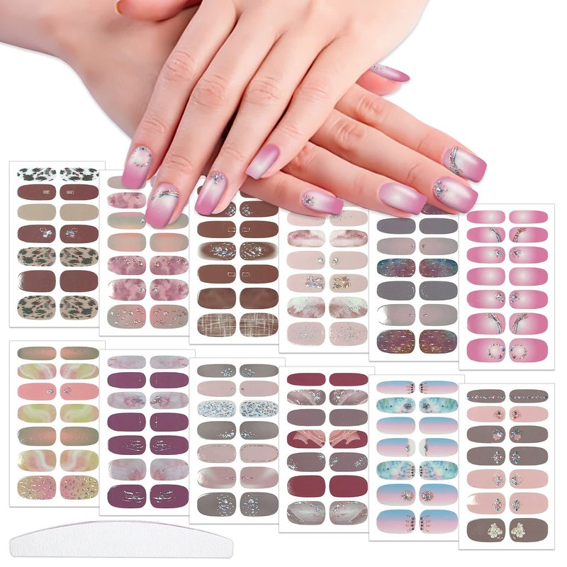 - 【12 DIFFERENT GLITTER GRADIENT DESIGNS】:these full nail wraps including various different mixed color and gradient designs, that are fashionable to mix up with different style everyday, make your nails more dazzling and charming.
