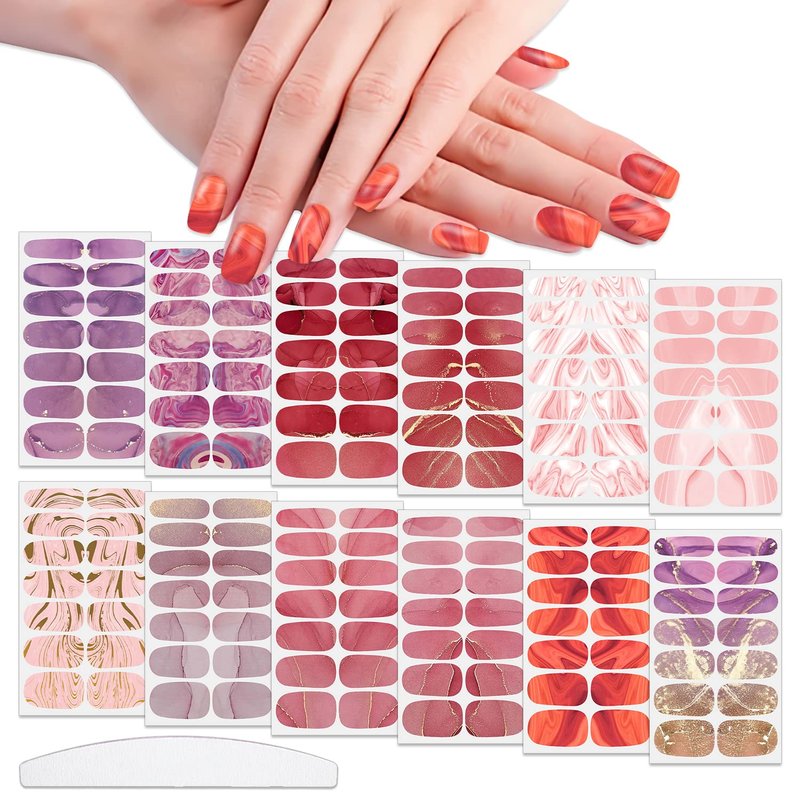 - 【12 DIFFERENT GRADIENT DESIGNS】:these full nail wraps including various different mixed color and gradient designs, that are fashionable to mix up with different style everyday, make your nails more dazzling and charming.