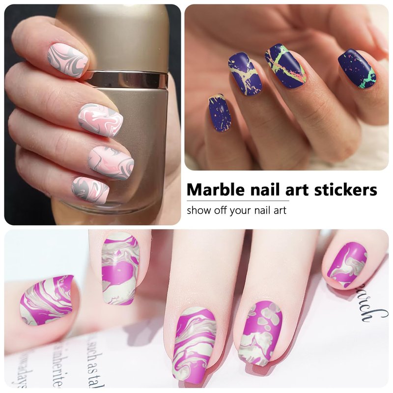 - 【GRANDIENT MARBLE DESIGN】:these full nail wraps including various different colors and sizes with mix marble designs, which is fashionable to mix up with different style everyday, would make your nails more dazzling and charming.