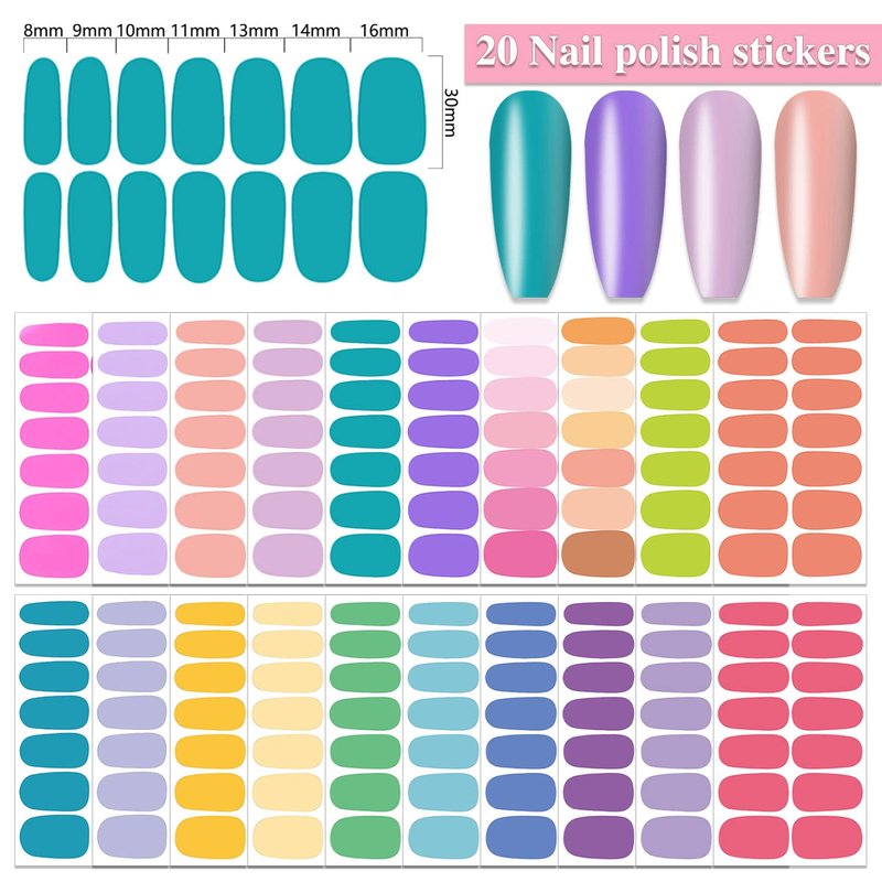 - 【COLORFUL SOLID DESIGN】: these full nail wraps including various different vivid solid colors and sizes, concise but unique, make your nails more dazzling and charming.