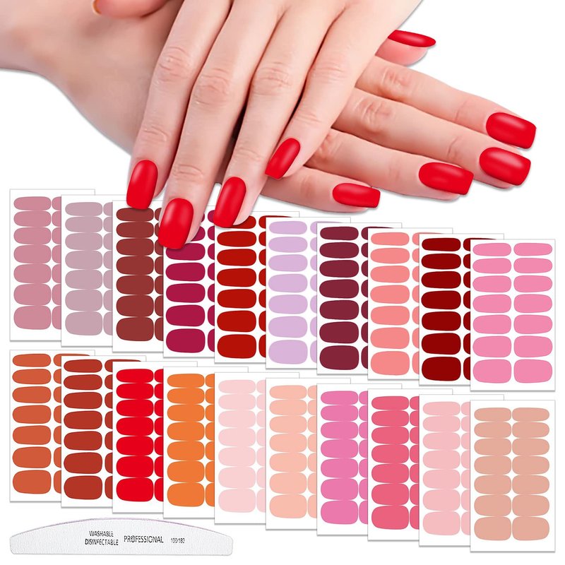 WOKOTO 20 Sheets Red Pink Nail Polish Strips Full Nail Wraps Solid Nail Stickers for Women Nail Art Polish Stickers Gel Nail Strips for Women Girls Nails Stick On Nails for Women Nail Polish Wraps