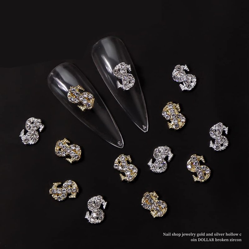 - 【Luxary Money Sign Design】: These nail money charms are designed with shining silver alloy and clear fake diamonds to be Luxary 3D gold money sign , sized 6*9mm, exquisite and beautiful.make your nails looks more elegant and charming.
