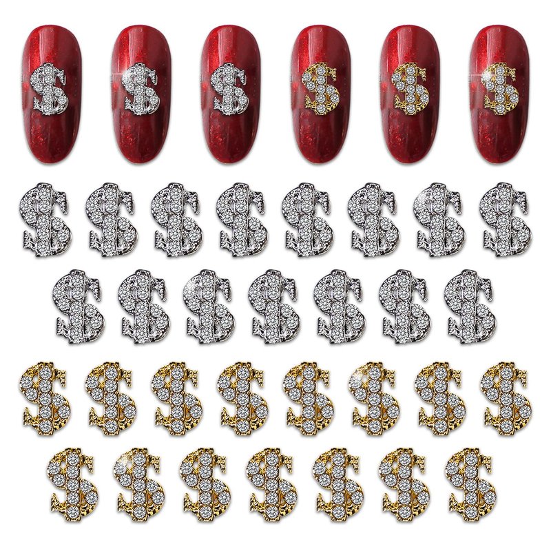 - 【3D Dollor Sign Charms For Nails】: Package Content 30Pcs gold and silver dollor sign nail charms, include 15 pcs gold and 15 pcs silver dollor charms, shining and fit for plenty of nail art designs.