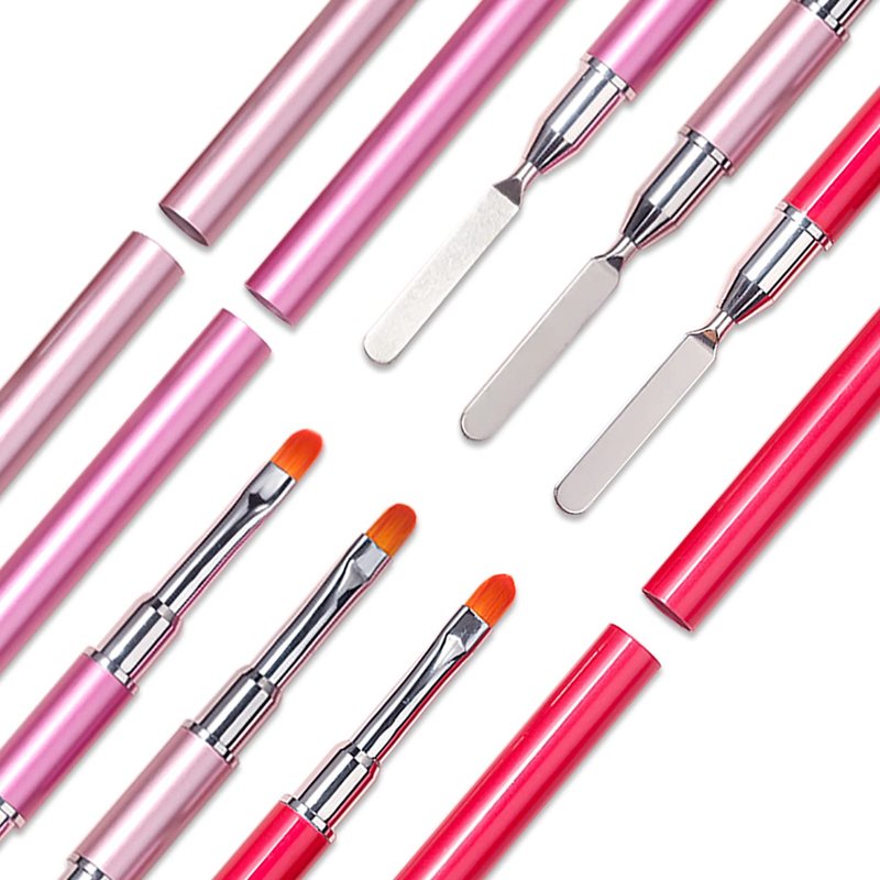 WOKOTO 3pcs Dual-Ended Gel Nail Brushes For Nail Art Extension Nails Gel Brushes For Nails Acrylic Nail Brushes For Acrylic Nails Design Brushes 2 Way Gel Spatula And Nail Art Brushes