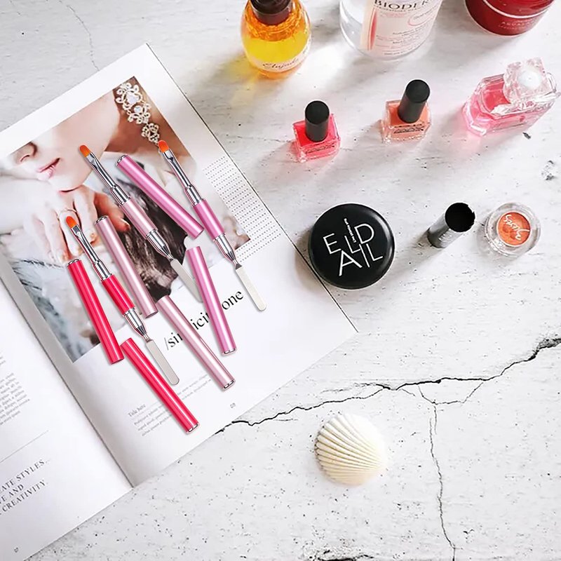 - PREMIUM QUALITY: The round tips brushes are made of quality fiber, non-deformation, non-corroding, and are assembled with strong glue between fiber and metal tubes. The spatula end is made of stainless steel and wouldn’t fray after using many times, that is durable and can’t shedding from the brush stick to your nails.