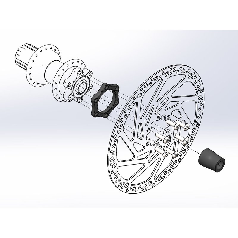 Boostinator kits consist of a specially-designed axle end cap and—in the case of rear kits—a precision-machined rotor spacer with a set of six high-strength bolts. In keeping with Boost specifications, the disc and cassette are shifted outboard, allowing brakes and derailleurs to function as designed.