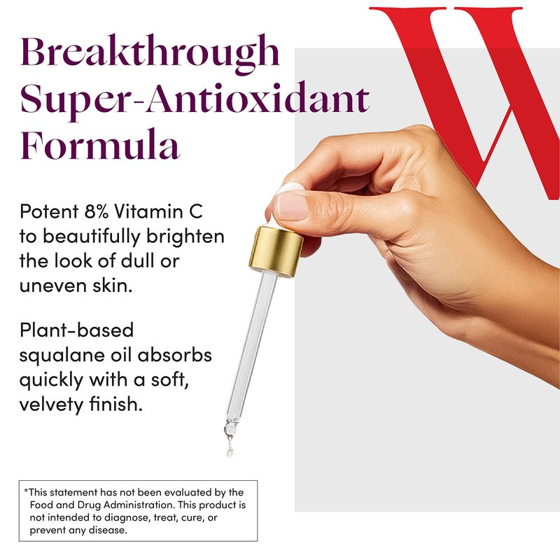 - Breakthrough Super Antioxidant Serum - 8% vitamin C in a naturally derived squalane oil solution to beautifully brighten and hydrate. Improve the appearance of the skin your changing hormones have dared to dull with this hydrating face serum.