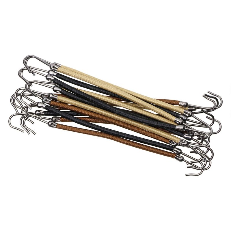 Mini skater bungee elastics band hooks allow a custom- fit ponytail no matter your hair texture. It help to creates the smooths natural ponytail in seconds. You just need to hook one end into hair and wrap the band around hair, the hook the other end into hair.; Features: Material – elastic and metal; Color – black, brown and apricot, 5 pcs each color; Size – about 5.3 inch ; Package includes - 5 x Black + 5 x Brown + 5 x Apricot ponytail hooks