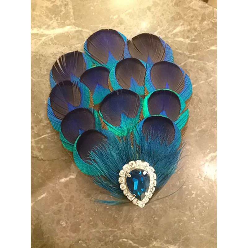 - Package: 1pc; Material: Feather, rhinestone, alloy