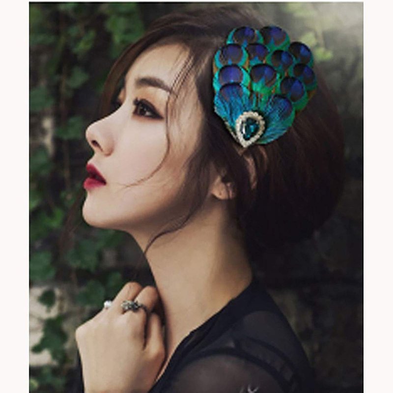 - Distinct peacock feather hair pins hair accessories for women.
