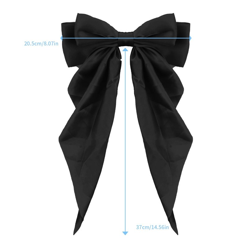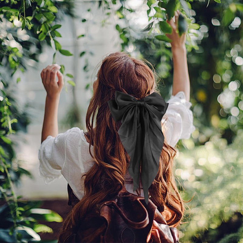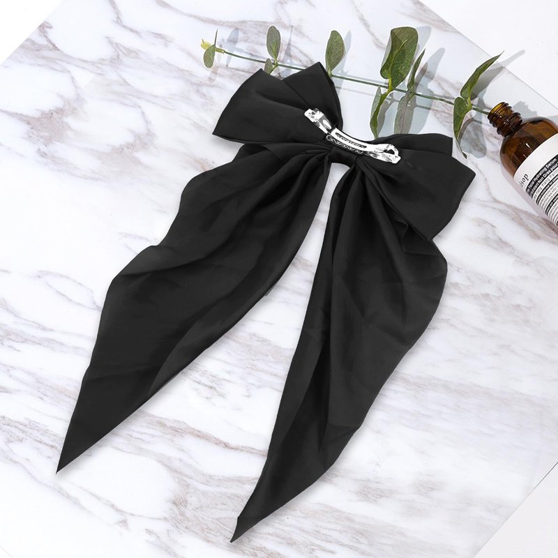 Women Bowknot Hair Clip,Vintage Satin Bow Barrette Hairclip Long Tail Headwear Hair Accessories for Ladies Big Bowknot Hairpin (Black)