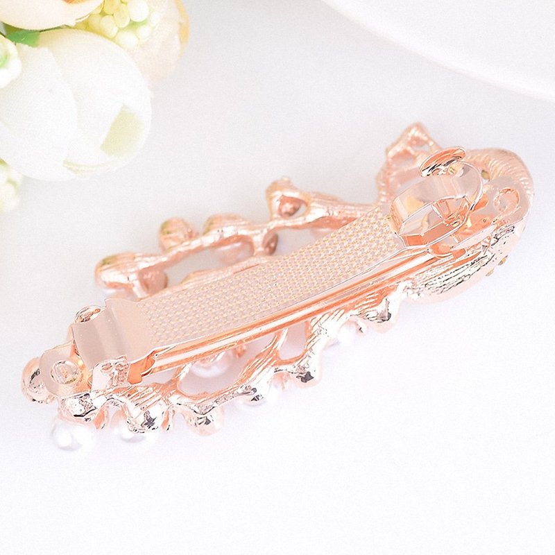 Womens Barrettes Women Crystal Simulated Pearl Peacock Barrettes Hairpins Elegant Animal Hair Clips Gold-color