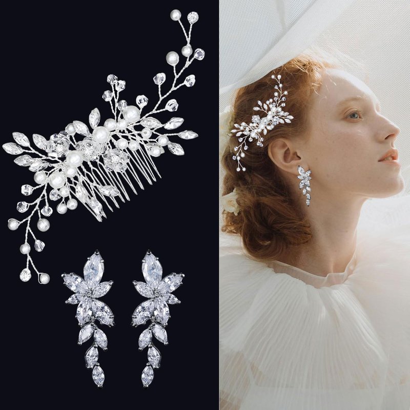 - Package include:You will receive 2 piece crystals bride hair accessories in 1 style scrystals include 1 pair of earrings and 1 pieces crystals pearl hair pins,1x black packaging box.