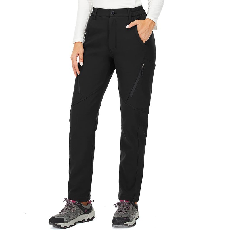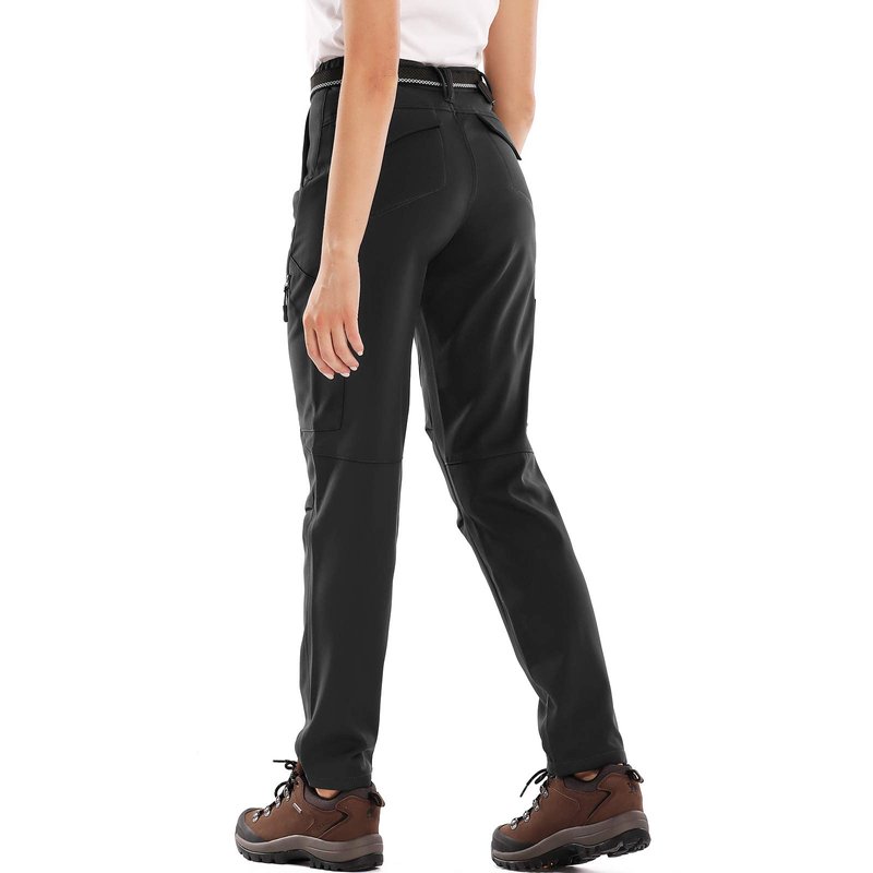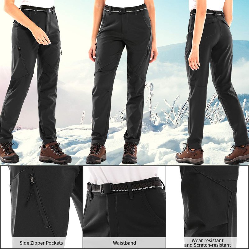 - Winter hiking pants women: 3 Secured Zipper Pockets can keep your phone, wallet, key, tactical gears or other accessories for ultimate safely, convenience and efficiency while moving. Freedom of movement - Stretch Spandex Softshell Pants featured with articulated knees provides great flexible.