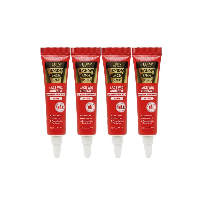 Wonder Lace Bond Lace Wig Adhesive Glue Tube Pack – Extreme Firm Hold (Active) 0.23fl. Oz/ 7mL - 4 Packs | Fast Drying, Waterproof, Latex Free, Perspiration Resistant, Cruelty Free