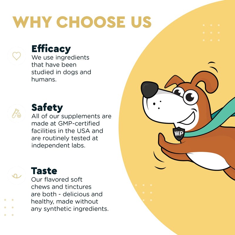 GAIN THE OMEGA SUPERPOWER! Hey, I’m Waggy — a furry entrepreneur and maker of the finest supplements that can turn your dog into a powerful superhero. As soon as I tested Omega Max 3X on myself, my friends started to pay some serious attention to my shiny, supple, and luxurious coat. My hips and joints began to feel fantastic, so I could turn it up on the dance floor. So what’s my secret? It’s 3 different sources of Omega-3: salmon, cod liver, and krill oil - all in one supplement! It tastes great and it’s great for you, so drink up to your health. Our Fish Oil liquid for dogs are Made in USA in a GMP Certified Facility with global ingredients to help ensure you get the best fish oil formula for your dog. Benefits of Wonder Paws tasty natural liquid fish oil for dogs Omega Max 3X: - Supports healthy Skin and Coat - Promotes Joint and Overall Health - Maintains a Healthy Immune System - Features Omega 3 from Wild Alaskan, Cod and Krill Oil (EPA & DHA) - For Dogs of any size, age or breed. Click the "Add To Cart" Button above to try our Omega Max 3x today!