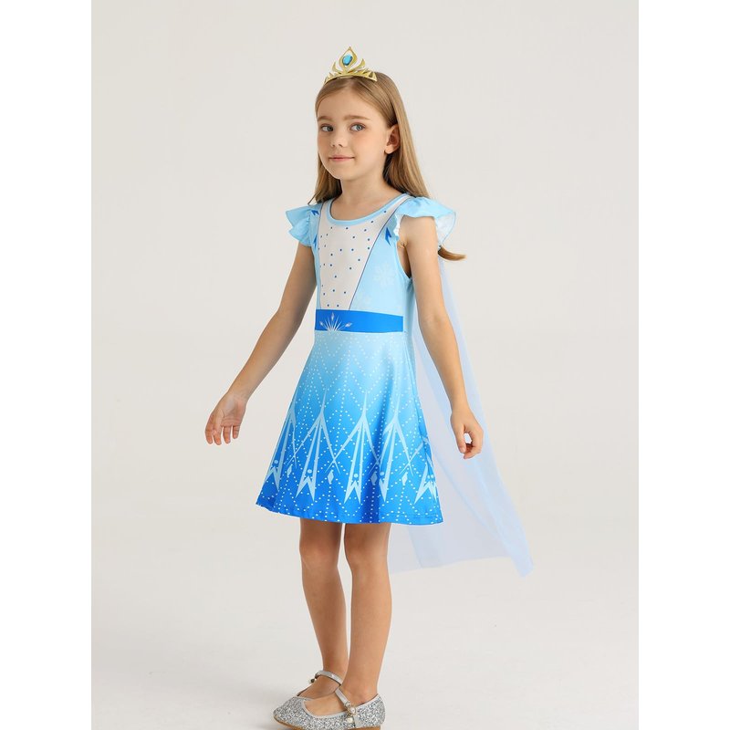 - 【Lovely Design】Princess puffy Sleeve Dress for girls, vivid 3D print,its gorgeous and vibrant.looks very lovely and cute.A removable cape adds a touch of magic to the princess outfit.