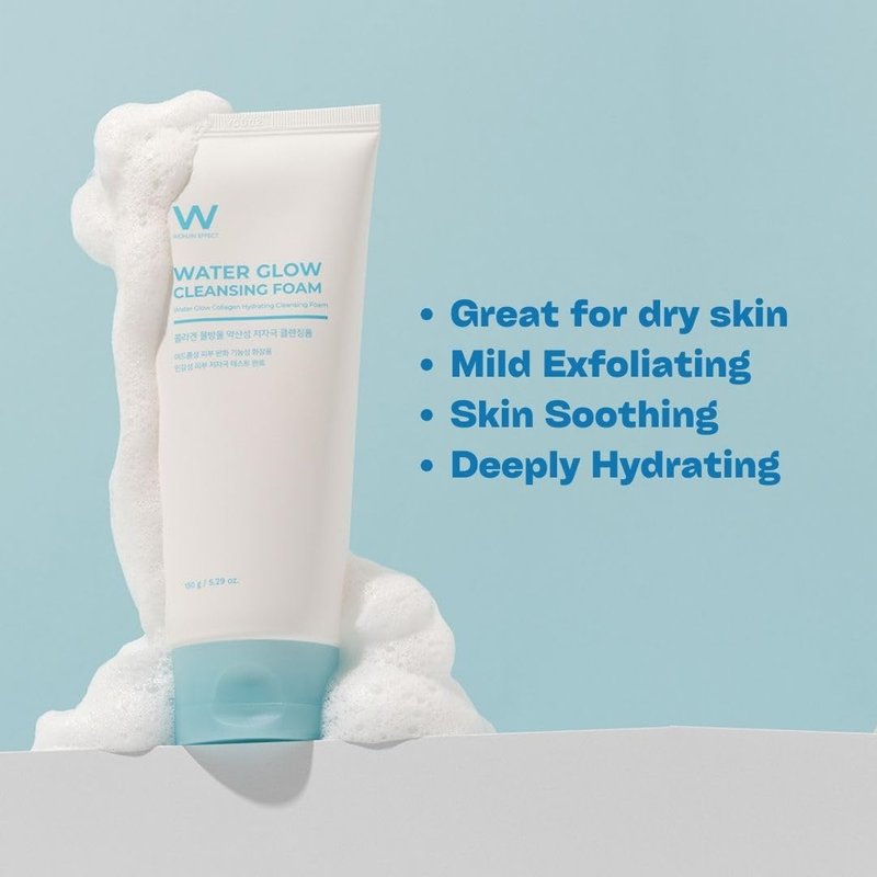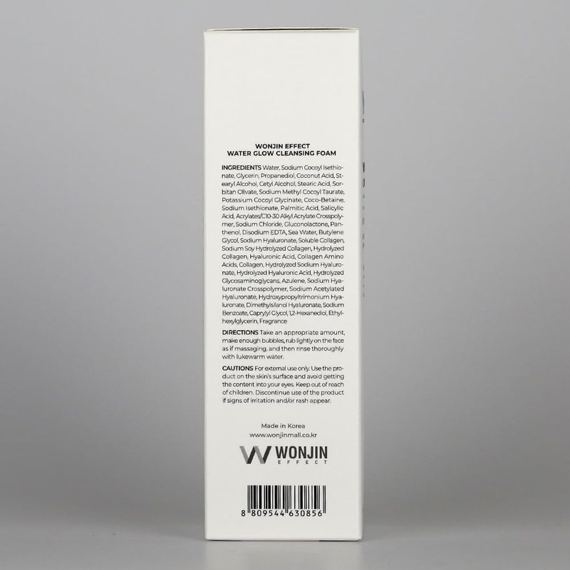 Wonjin Effect WATER GLOW CLEANSING FOAM 5.29 fl Oz, Oil free, Hypoallergenic Facial Cleanser, Hydrating Face Wash, Salicylic Acid, BHA & PHA, Hyaluronic Acid, Sensitive Skin, Kbeauty