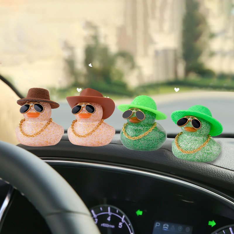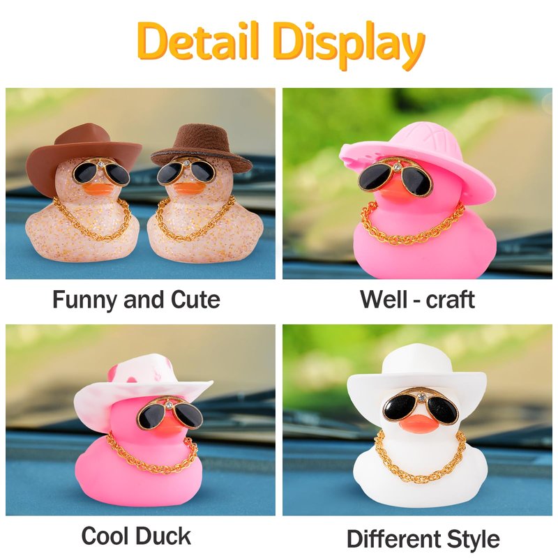 wonuu Car Dashboard Rubber Duck Ornament, Car Decoration Colour Ducks Accessories with Mini Hat Necklace and Sunglasses, G-Brown-Cowboy Hat