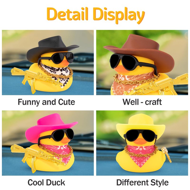 wonuu Rubber Duck Car Ornaments Duck Car Dashboard Decorations for Cool Car Accessories with Cowboy Hat Necklace and Sunglasses, A_Black Cowboy hat