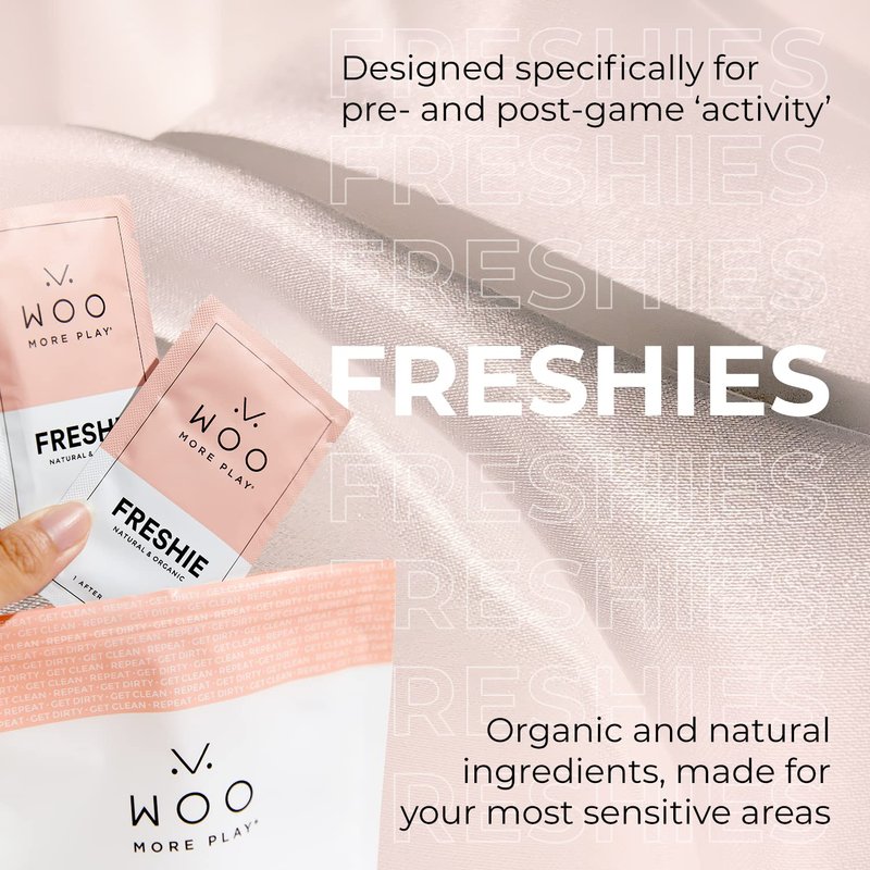- Woo More Play Freshies Wipes are moisturizing body wipes, made with aloe vera and cranberry extract, designed to support smooth, supple, and hydrated skin. Refresh your skin before and after the most intimate moments with Freshies.